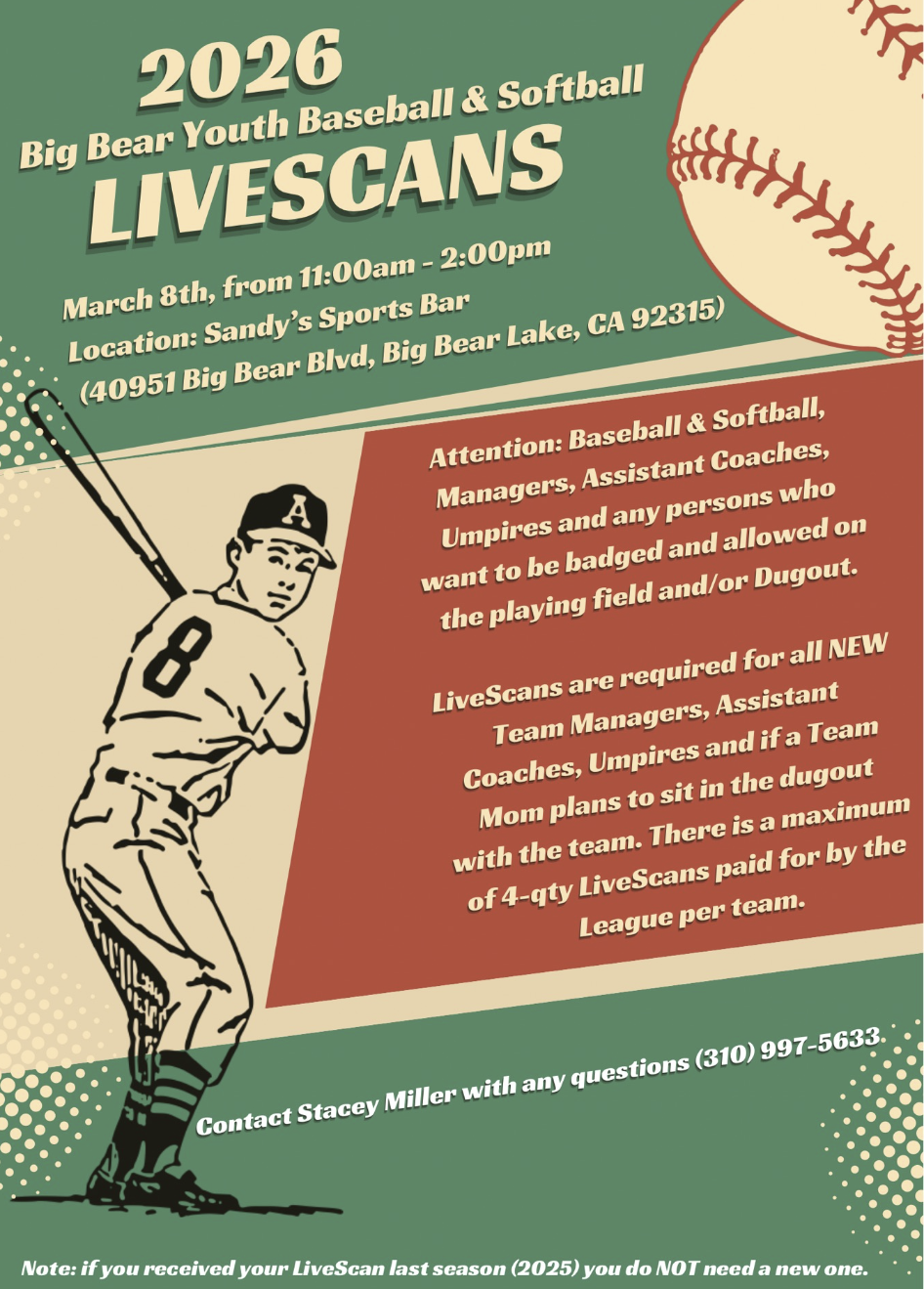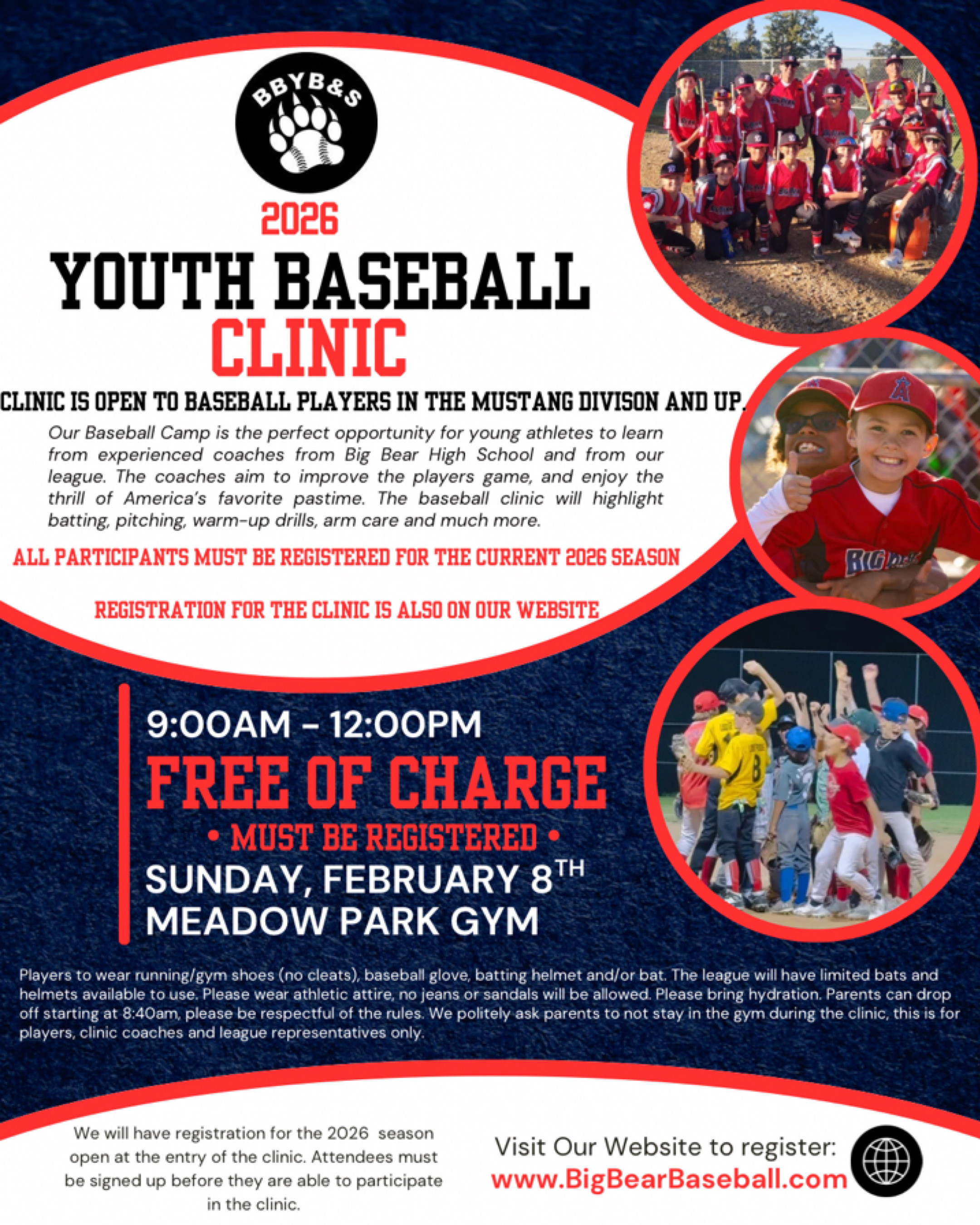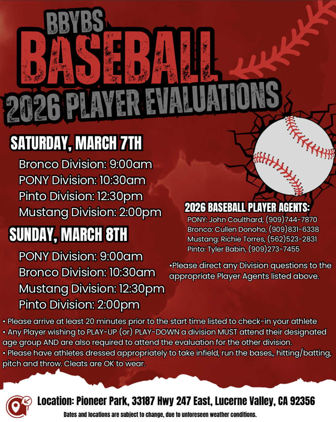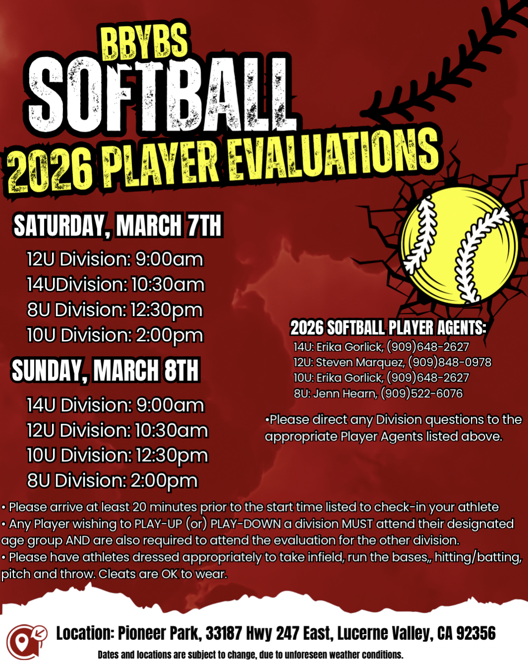Registration for the 2026 Spring Baseball & Softball season has begun. Registration typically ends in February, followed by evaluations in March. Follow us on Facebook or Instagram for updates on our 2026 Season and Registration.